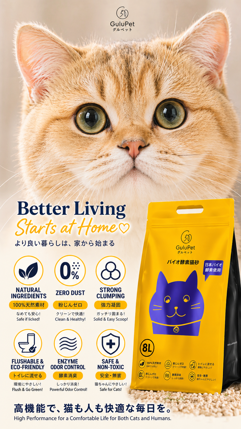 GuluPet Japanese Enzyme Tofu Cat Litter delivers a cleaner, smarter way to care for your cat.